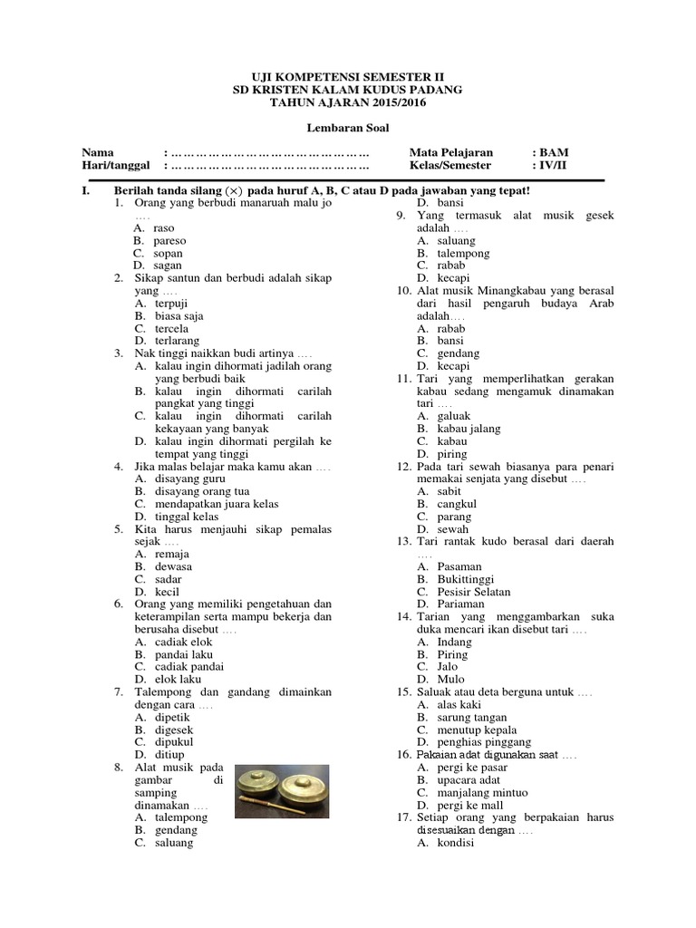 Contoh soal uts bam kelas 6 semester 1 dapatkan contoh.