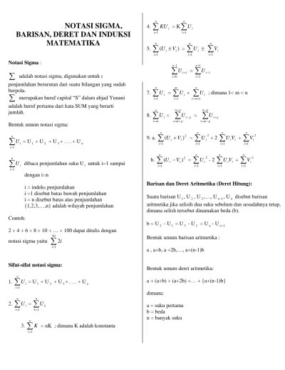 Pengertian rumus sifat sifat notasi sigma tak hingga hitung .